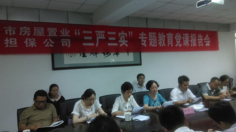 6月26日下午,市住建委黨委委員、副主任程國志來到市房屋置業(yè)擔保公司,專門作了“三嚴三實”專題教育黨課輔導。公司領(lǐng)導班子全體成員、中層骨干、黨員、發(fā)展對象及入黨積極分子30余人參加報告會?! ?br />